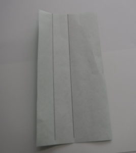 みどりいろの おりがみを はんぶんに きって おりまげてみて!