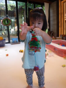 12月号の「ちゅらまーる便り」の表紙は2歳の子どもたちが楽しんだ積み木遊びの様子です たくさんある積み木をまずは積み上げたり並べたり、ガシャガシャ壊したりして遊びました お互いに興味を持ち少しずつ関わり合ってそれで…