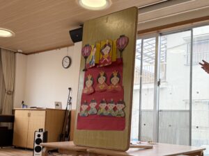 ひなまつりの由来や、ひなまつりに食べるものについてのお話を聞いたり、○×クイズを楽しみました。 正しいお内裏様と、どこかが少し違うお内裏様を見比べて、「どちらがあっているでしょう?」というクイズにどっちあってるかな?持っ…