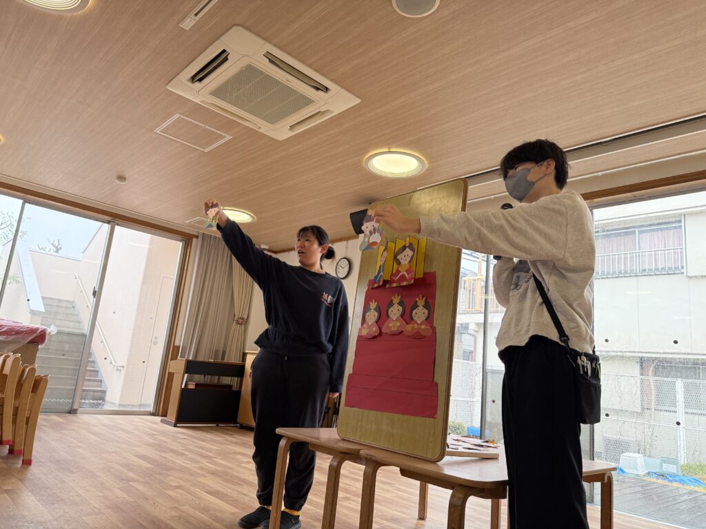 ひなまつりの由来や、ひなまつりに食べるものについてのお話を聞いたり、○×クイズを楽しみました。