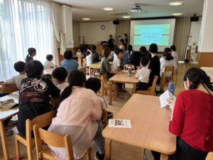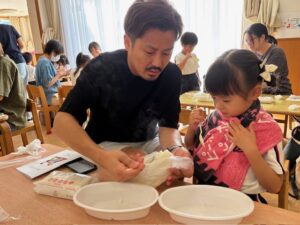9月:防災クッキング(らいおんのへや) 2025/09/17 9月6日(土)にらいおんのへやで防災クッキングがありました。この日の防災クッキングでは、実際に災害にあった時簡単に作れるカレーの作り方を知って、「簡単に作れるね」「お家でも出来るで」と作り方を見ている姿が見られました。アイラップを使って、簡単にお米を炊く方法を知り、「炊飯器じゃなくても作れるんだ」と驚いていました。また、パワーポイントを通して、家族で災害時の集合場所を話しあうことの大切さや正しい避難の仕方、ローリングストックなど災害に備えてしておくことを考えることが出来ました。