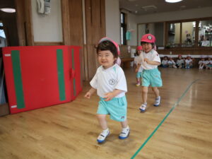 子どもたちが今好きな物や、好きな絵本、好きな生き物を出し合い、話し合って「うらしまたろう」を行うことが決まりました。子どもたちも良く知っているお話なので、歌や踊りもすぐに覚えていました。日中の遊びでも「うらしまたろうごっ…