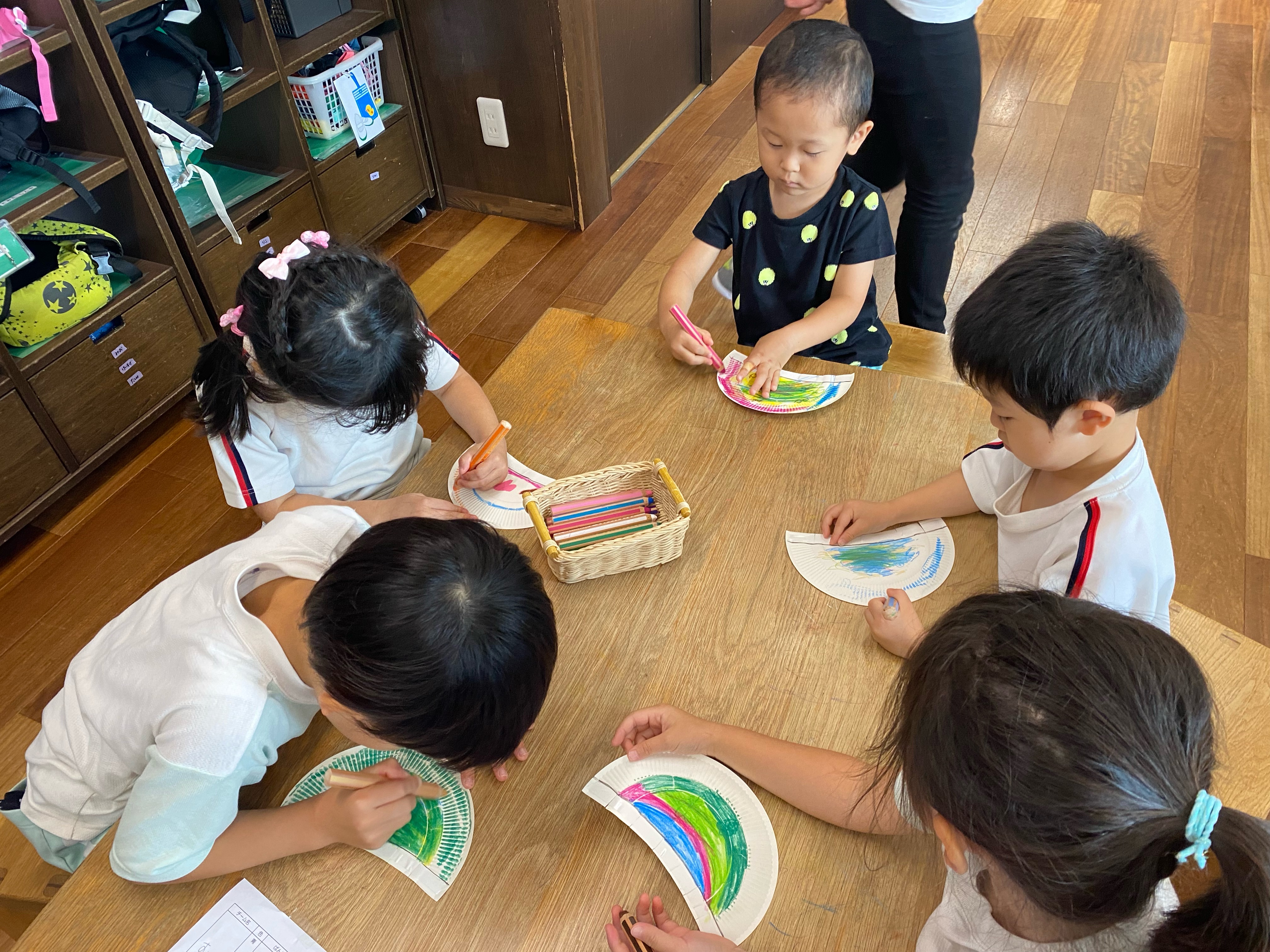 なつまつりごっこのお店屋さんで使用するサンバイザー作りです🎵