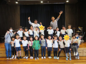 らいおん(5歳児)全員がステージに登場し、講師の先生が作詞作曲を手掛けた