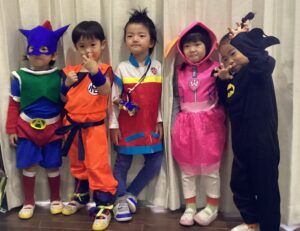 10月31日にハロウィンパーティーがありました。ぱんだのへや(3歳児)の子どもたちも、仮装をしてハロウィンパーティーに参加し、仮装ファッションショーをしたり、ハロウィンの体操をしたり、普段と違うこども園の雰囲気にワクワクした表情で楽しんでいました。自分たちで作ったハロウィンの鞄を手に、「トリック・オア・トリート!」とハロウィンの合言葉を園長先生に言うと、お菓子をもらうことができて大喜びの子どもたちでした。今後も季節の行事に楽しんで参加できるように関わっていきたいと思います。