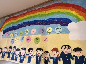 3月31日にお別れ会がありました。3・4・5歳児さんはお互いにプレゼントを作り交換していました。「4がつからもがんばってね」と励まし合っていました。年長さんが卒業するのは寂しいですが、明日から新入園児さんが入園し賑やかに…