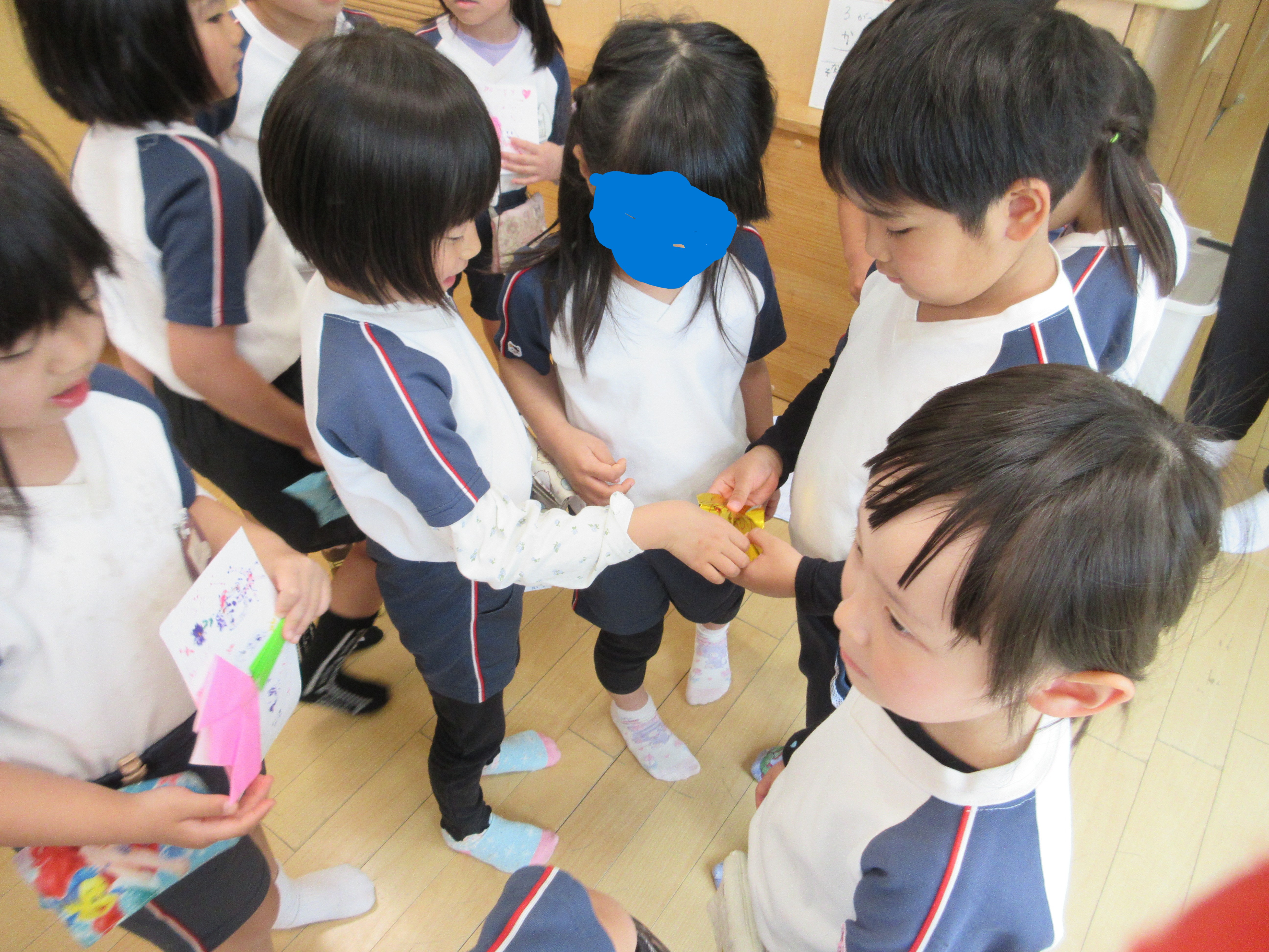 3月の子どもたちの様子 2026/03/31 3月31日にお別れ会がありました。3・4・5歳児さんはお互いにプレゼントを作り交換していました。「4がつからもがんばってね」と励まし合っていました。年長さんが卒業するのは寂しいですが、明日から新入園児さんが入園し賑やかになりそうです。