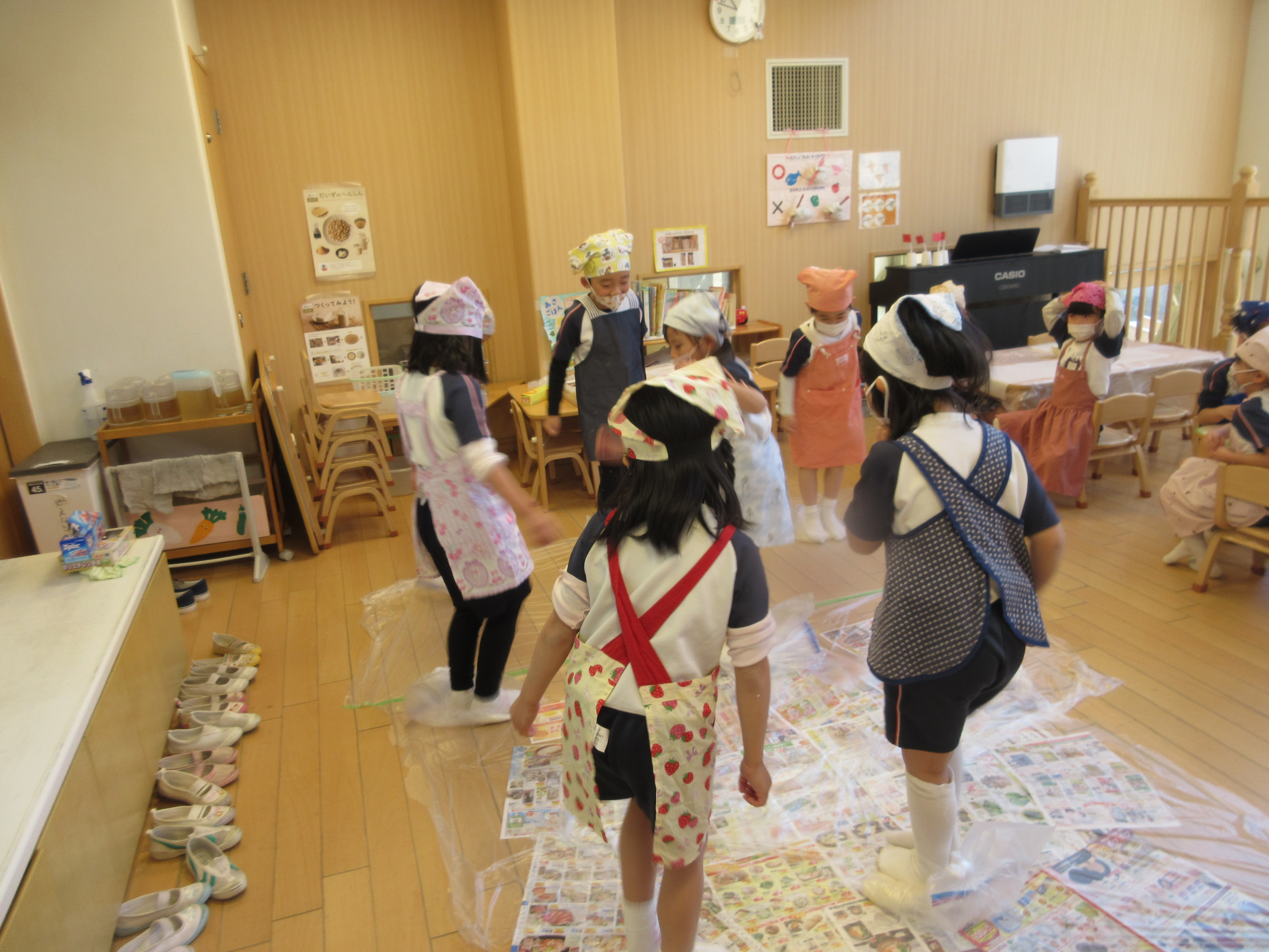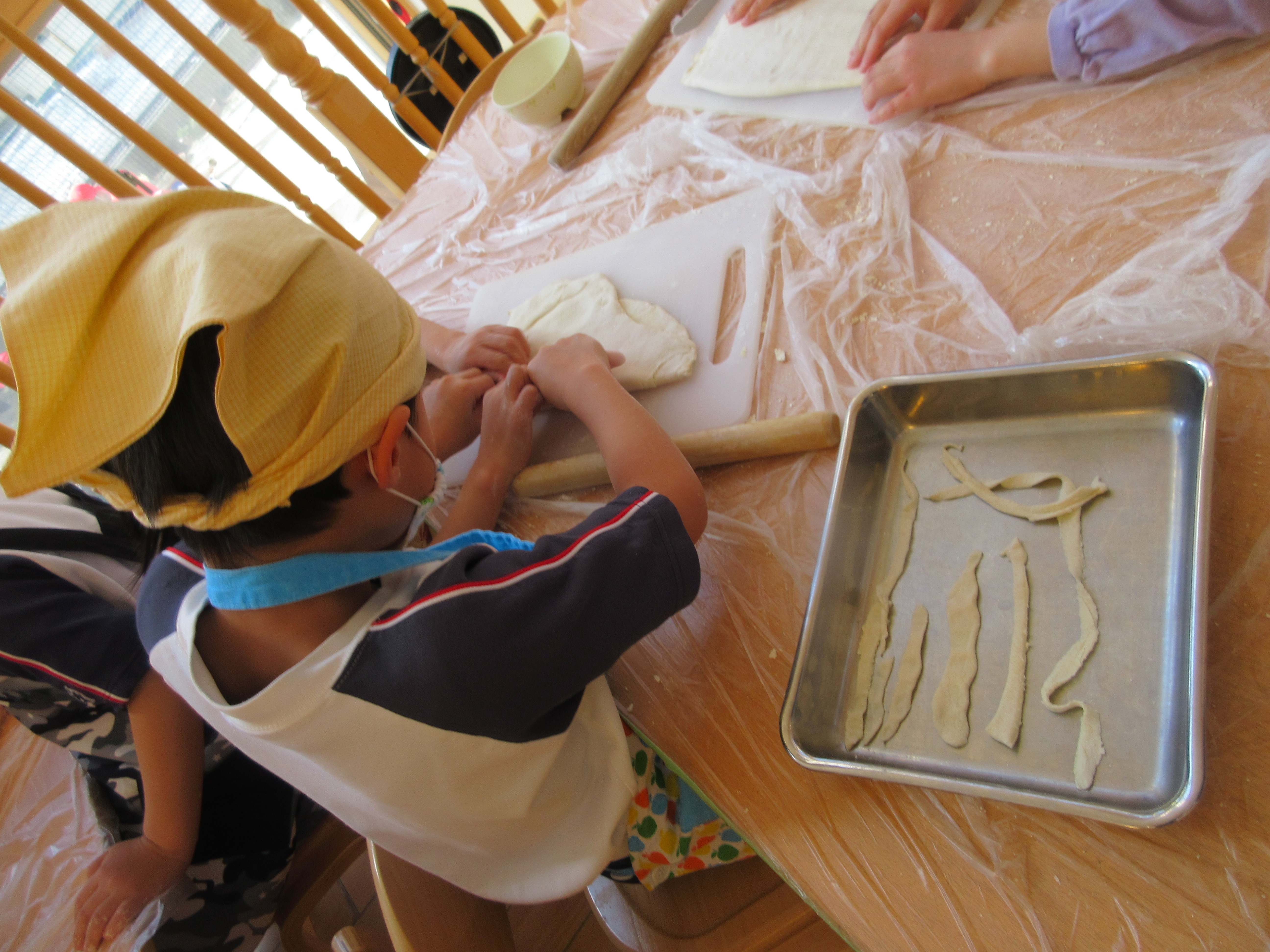 粉に水を入ながらこね、できた塊りを踏み、伸ばして切る。と言った沢山の工程を頑張りました。