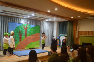 各クラスの劇の内容は子どもたちが好きな絵本を題材にし、役も自分たちで決めて当日に向けて日中や夕方の時間に練習をしてきました。