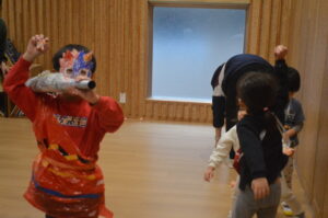 節分会 2025/02/22 節分会がありました。ホールで節分の由来を聞いた後に、いざ豆まき! 今年の鬼は、年長の子ども達が、手作りの衣装・お面をかぶって鬼を演じてくれたので、子どもたちも怖がることなく豆まきを楽しむ事が出来ました。 鬼を演じた子ども達は、まだまだ元気な子もいましたが「こんなに豆を投げられるならもうこりごりだ」と話す子もいて思わず笑ってしまいました。もう少しで、卒園する年長児の子ども達と在園児との楽しい思い出が出来ました。