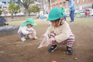 季節ならではの素材を使った遊びをとっても楽しんだ子どもたちの姿がありました。その姿を大切に、今後も子どもたちの興味関心のなかから季節感を味わえる遊びを取り組んでいけるようにしていきたいです。