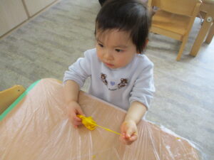 1歳児「伸びる粘土で遊んだよ!」