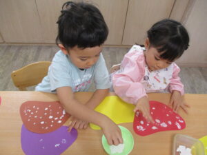 2歳児「きのこの製作をしたよ!」