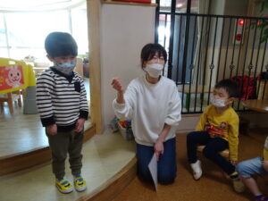 今年は規模を縮小し、うさぎ組さんだけでのお別れ会が行われました。進級した時はまだまだお話しすることも拙い様子でしたが、椅子に座って先生のお話を聞いたり、一人ひとり先生からの簡単な質問に答えられるようになっていたり…。一年の成長を感じられるひと時でした。