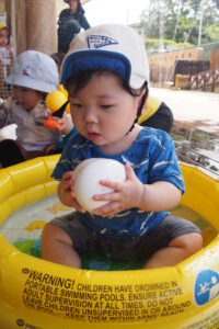 初めての水遊びに驚く姿もありましたが