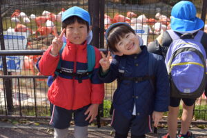 3月のお別れ遠足では4,5歳児で 王子動物園に行きました。 数日前に一緒に回るチームの友だちや 保育者と見る動物やルートを相談して決め、 この日はお弁当を食べることを伝えると、 「いつ遠足なの?」「早くお弁当を食べたい!…