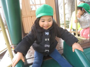 月若公園まで散歩に行きました。 信号ゲームや「しんごうきピコリ」という 絵本を通して、交通ルールにも関心を持っていたので、 保育者の声掛けをよく聞きながら車や行き交う人に 注意しながら歩くことができていました。 手すりを…