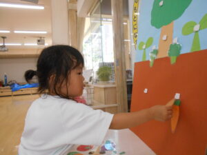 今月、フィンガーペイントで絵具に直接触り、感触や色が混ざる様子を楽しみました。画用紙に転写された模様にも興味を持ち、保育士を真似て自分で転写させようとする姿がありましたよ。 フィンガーペイントには情緒を安定させる効果…