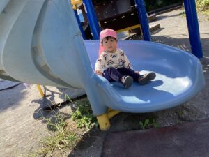 過ごしやすい気候になり、散歩にもでかけています。 公園までの道では、お花を見付けると「あ!」と指をさして教えてくれます。 また、以前まではバギーに乗っていましたが歩行が安定してきて、保育士と手を繋いで歩くことにも…