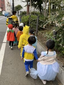 当日は乳児も幼児もお気に入りの仮装姿で楽しみました。