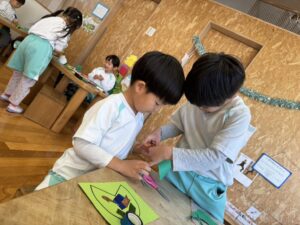 「のりで付けたらどう?」とアドバイスしたりしながら