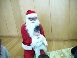 幼児クラスではサンタさんに質問!「サンタさんの家は綺麗ですか?」「サンタさんはどうしてプレゼントをくれるの?」「サンタさんの好きな果物は何ですか?」など質問がでました。キラキラした目で答えを聞いている可愛らしい子どもたちの姿が沢山ありました。プレゼントをもらったお礼に歌やダンスを披露!「とっても上手だね~!」とサンタさんも嬉しそうでした。思い出に残る一日となりました。