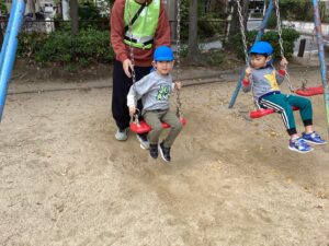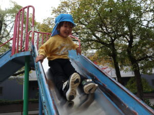 公園では、すべり台を滑ることや、初めてのブランコも楽しみました。