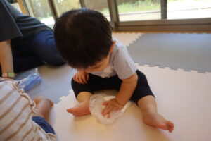 それぞれ、袋を持って揉んでみたり、押したり、叩いたりして感触を楽しむ姿が見られました。