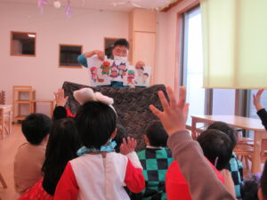 2月26日(月)に2歳児クラスでは講師の先生を招き、初めての音楽指導に参加しました。初めての先生に少し緊張しながらも、「誰だろう?」「何が始まるのかな?」と興味津々で、椅子に座りしっかり話を聞き、自己紹介したり、一緒に…