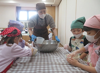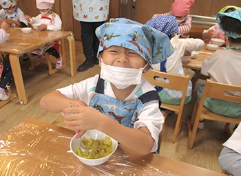 クッキングは、子どもたちが食材に触れ、調理過程を知ることで、食への興味や関心を高めます。