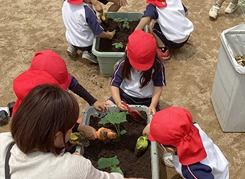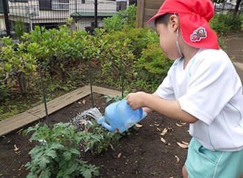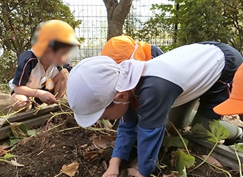 菜園活動の種を蒔き、水を与え、育てるという一連のプロセスを通して、子どもたちが「命」と直接触れ合い、野菜が成長する様子を観察することで、生物が持つ生命力や、命の尊さを伝えます。