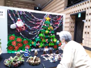 御津公民館作品展 出展 2025/12/04 御津公民館の作品展にケアハウスからも、壁面飾り 『あわてんぼうのサンタクロース」を出展しました。そして入居者の皆さん作品展を見学。知り合いの方に出会ったり、近所の方の作品を見つけたりして少しタイムスリップ!(^^)! お茶もご馳走になりとても楽しい時間を過ごしました(^^♪