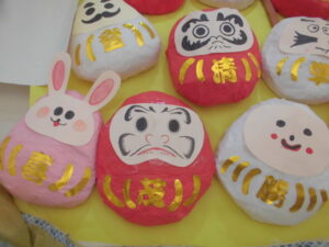 入居者様が顔を描いて、名前の一文字が入った個性ある達磨が出来ました